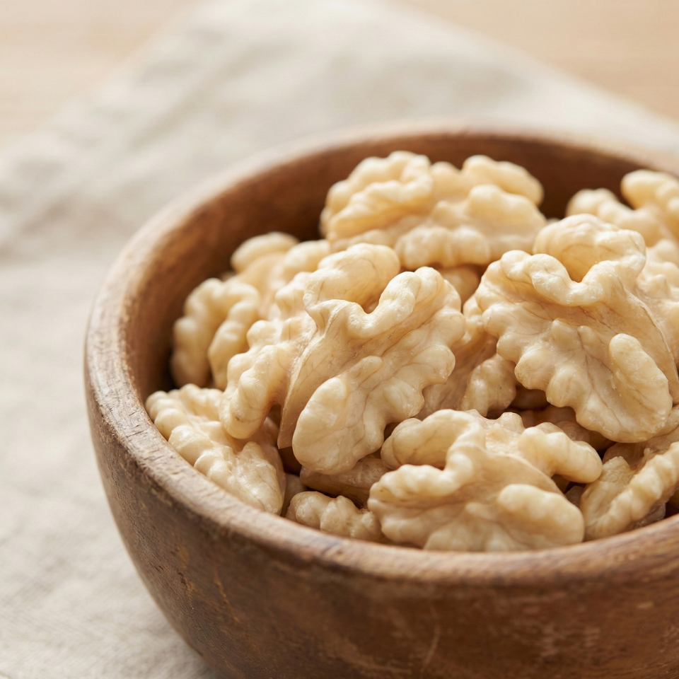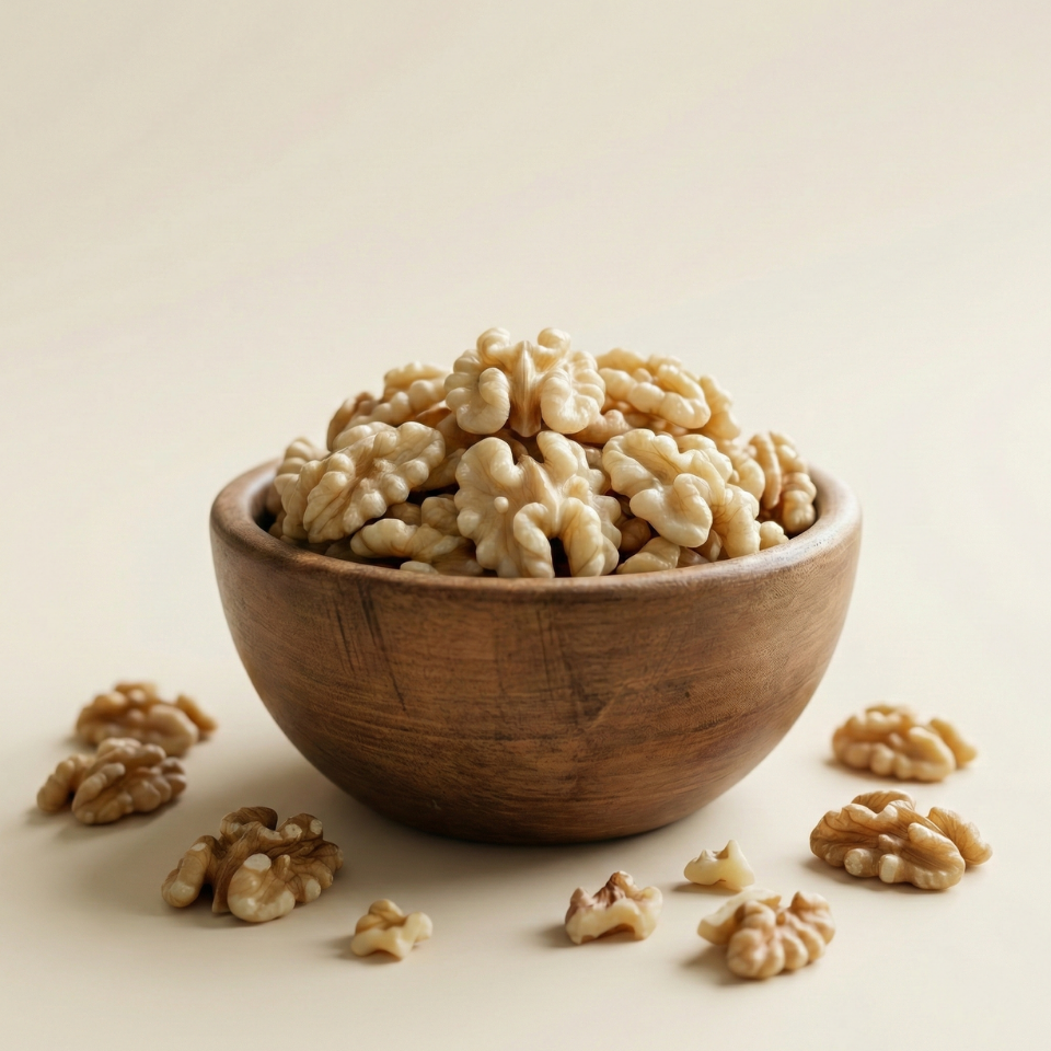 Özenle seçilmiş, bütünlüğünü koruyan, beyaz ve taze kelebek ceviz içleri.